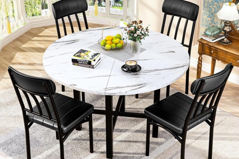 AWQM Round Dining Table Set for 4,Faux Marble Circle Dining Table Set with Chairs,Modern Kitchen Table … AWQM Round Dining Table Set for 4,Faux Marble Circle Dining Table Set with Chairs,Modern Kitchen Table and Chairs Set for 4,Round Dinner Table & Chair Set for Small Space,WhiteRead more